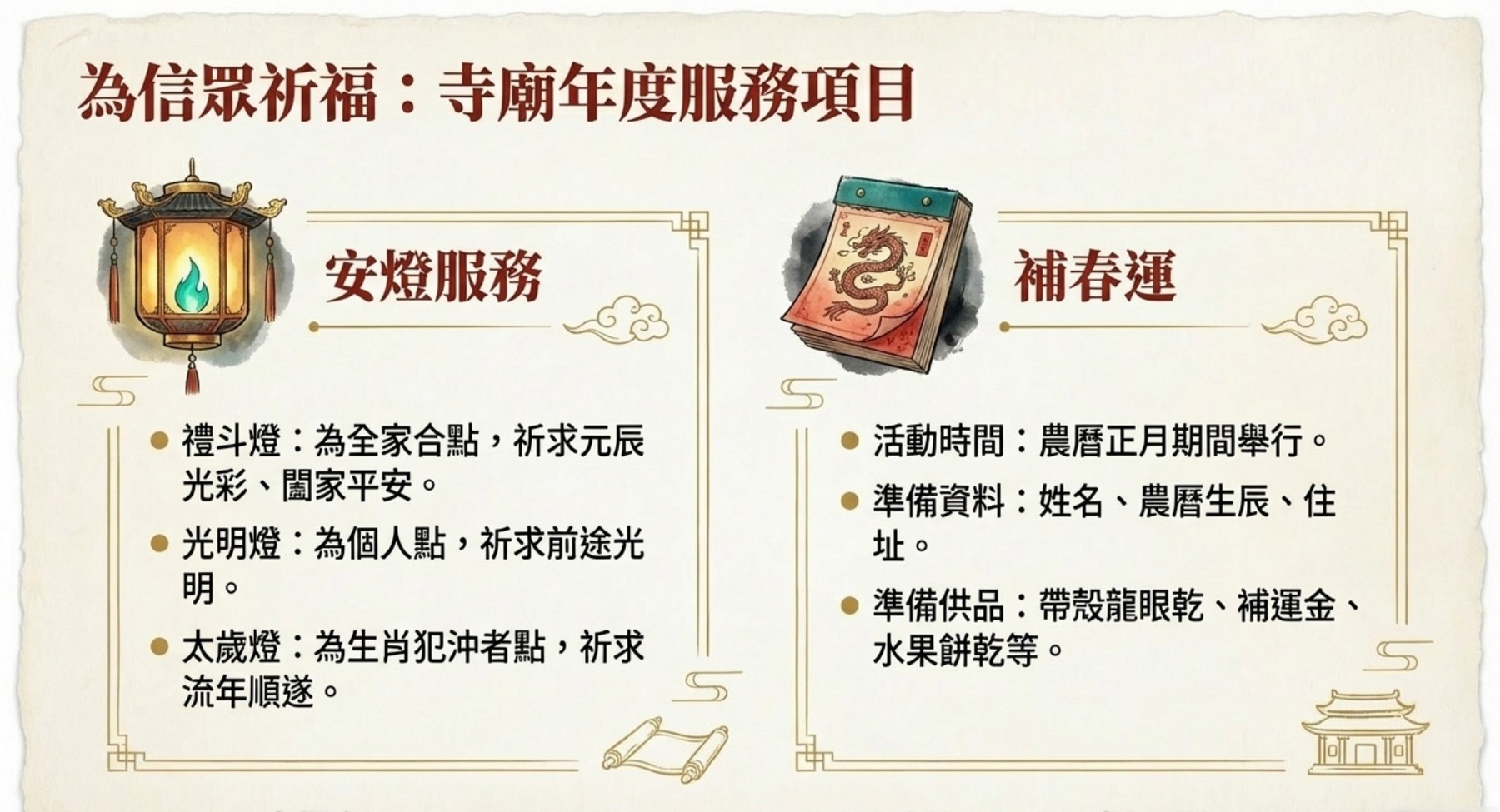 太歲燈*:為生肖犯沖者點,祈求流年順遂。