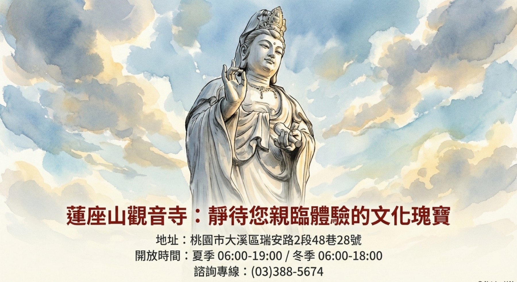 兩百多年來,蓮座山觀音寺不僅是一座建築瑰寶,更是無數信眾心靈的依歸。 佇立山巔的觀音聖像,以其永恆的慈悲,靜靜守護著這片土地與大漢溪的子民。