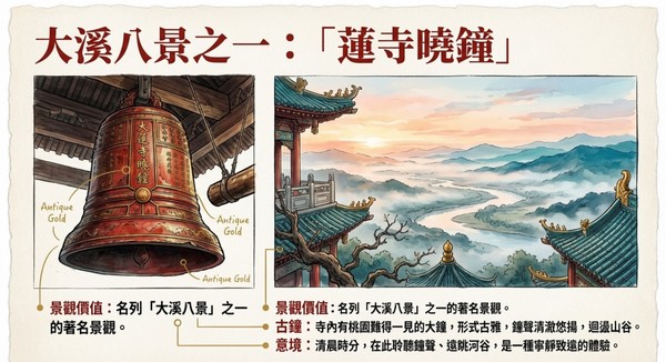 景觀之勝:坐擁「蓮寺曉鐘」的 大溪八景美名。