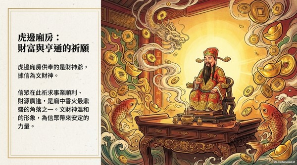 虎邊廂房供奉的是財神爺, 據信為文財神。
