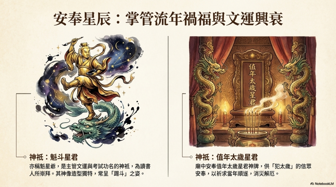 亦稱魁星爺,是主管文運與考試功名的神祇,為讀書 人所崇拜。其神像造型獨特,常呈「踢斗」之姿。