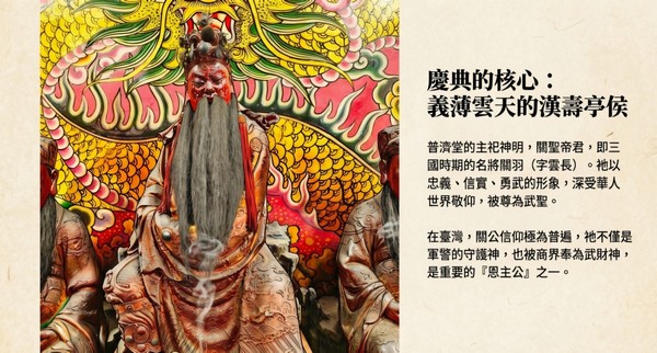 這場百年盛會,是為了慶祝主祀神明——關聖帝君 君的聖誕千秋。