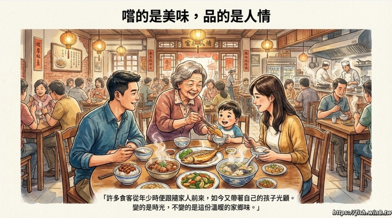 「許多食客從年少時便跟隨家人前來,如今又帶著自己的孩子光顧。 變的是時光,不變的是這份溫暖的家鄉味。」