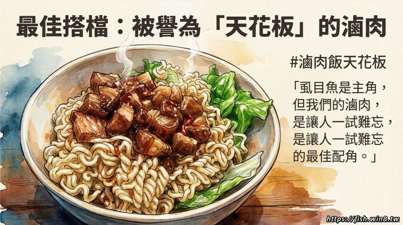 滷肉飯天花板「虱目魚是主角, 但我們的滷肉, 是讓人一試難忘, 的最佳配角。」